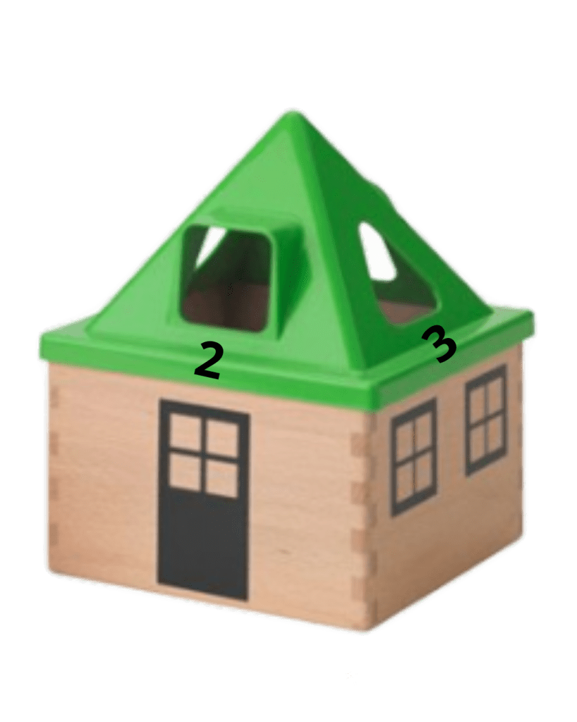 - Maison en bois avec fenêtres : utilisez une maison jouet en bois. Vous pouvez écrire des chiffres de 1 à 4 sur les fenêtres avec un feutre effaçable.