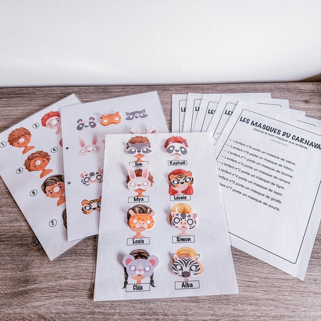 • une fiche avec des masques